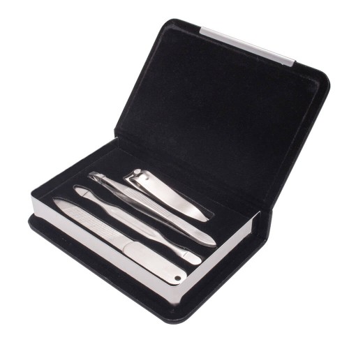 Incluye: corta uñas, lima, pinzas para depilar y removedor de cutícula.